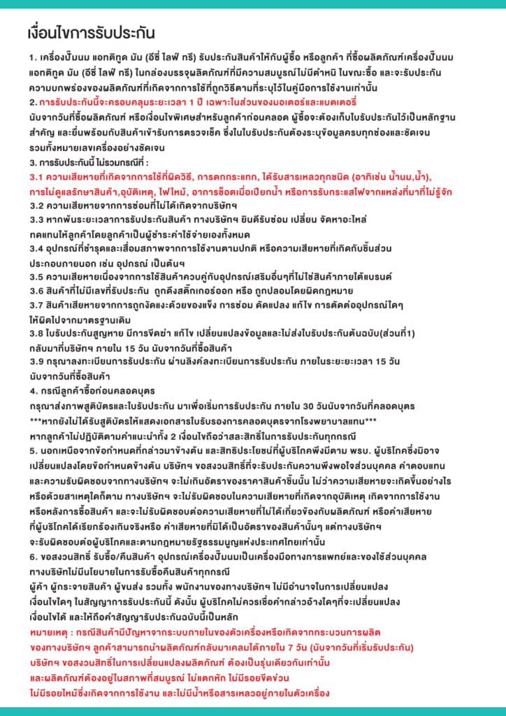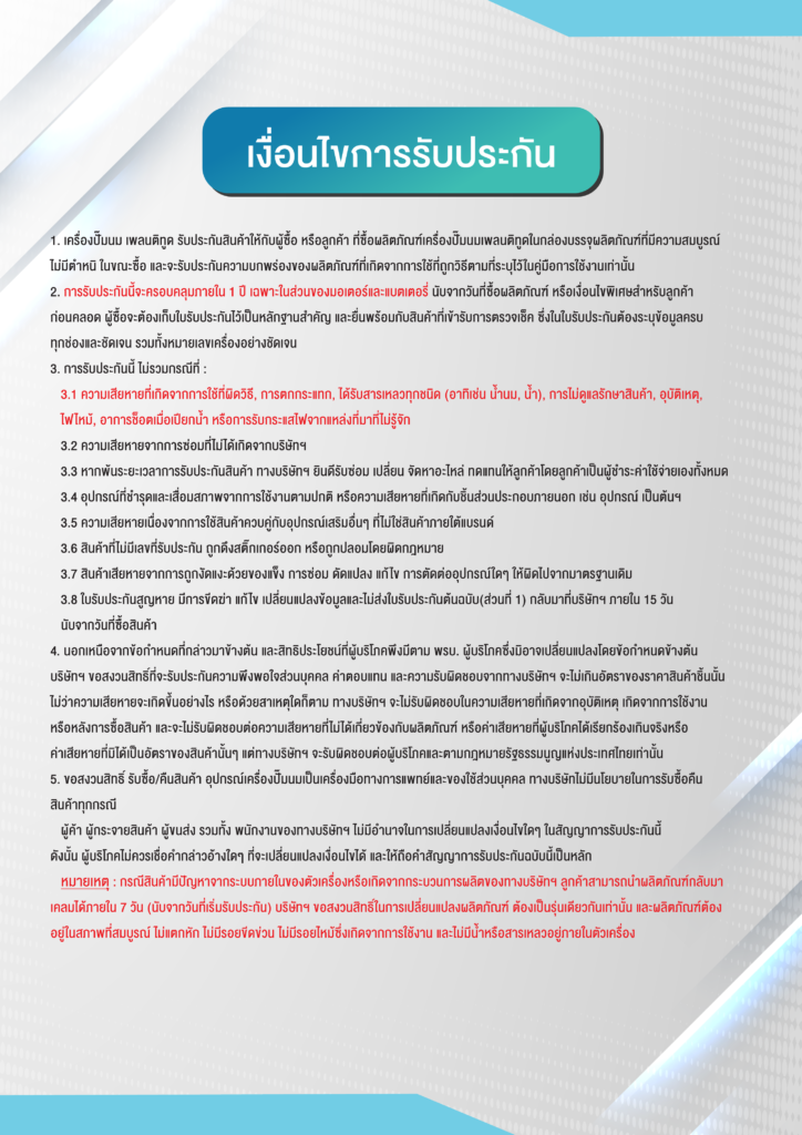 เงื่อนไขการรับประกัน Easy Life III